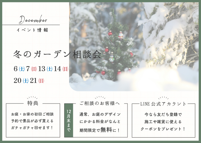 カントリーガーデンでは12月の土日祝に『冬のガーデン相談会』を開催いたします。