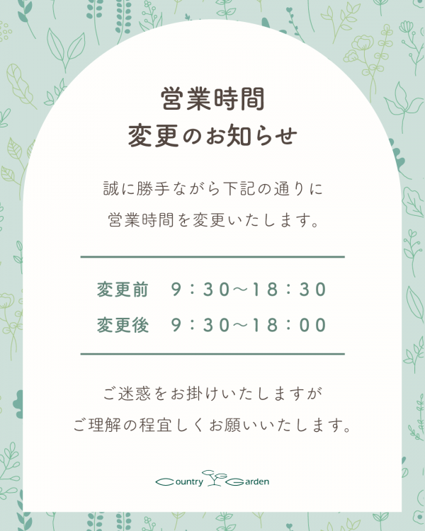 このたび、誠に勝手ながら営業時間を変更させていただくこととなりました。