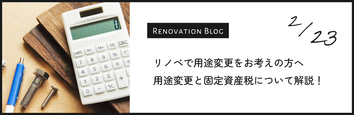 今回はリノベーションで用途変更の手続きが必要な場合とフルリノベーションと固定資産税の関係についてご紹介しました。